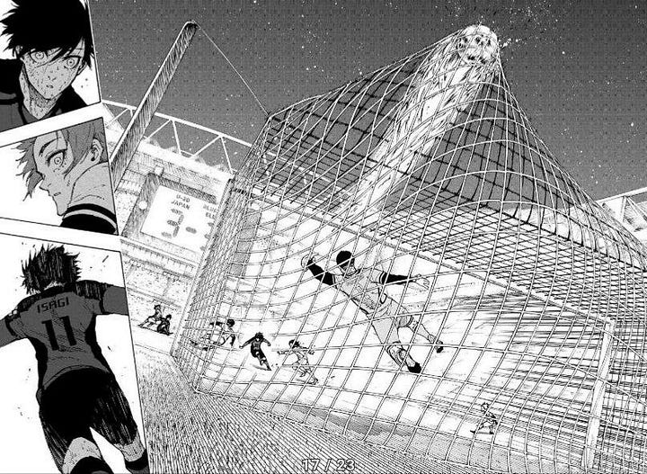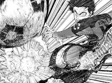 Blue Lock (A manga series that has very distinctive depictions of action and visual metaphor, done exceptionally well, to the point where many people consider the manga more “action-packed” than its anime adaptation)