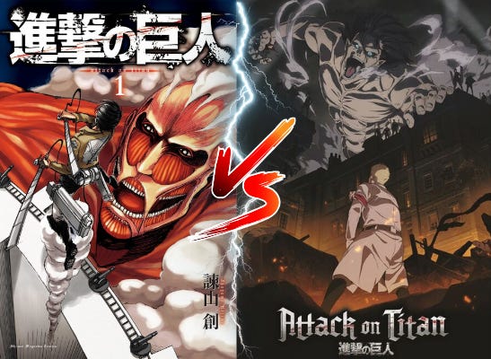 To see such differences, we can look at two example cases—first, being the sensation that many credit as being their first anime of all time, Attack on Titan, or Shingeki no Kyojin.